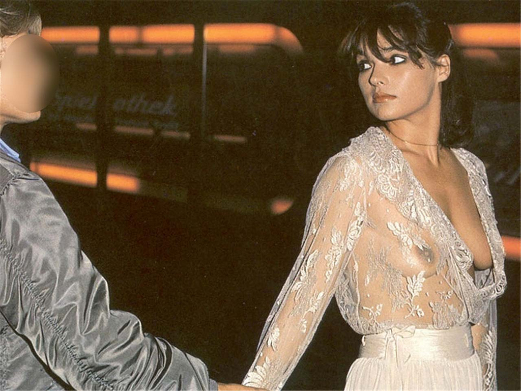Hot blond walks down stairs stark naked on a street in Cap D’Agde France while her nude husband waits for her.